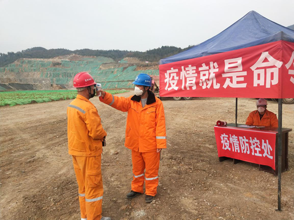 四、嚴格落實體溫檢測制度,在礦區入口設立防疫站,對進出礦區、辦公區等人員實施人員消毒及體溫檢測,對體溫超標的同事立即安排就診或居家隔離。