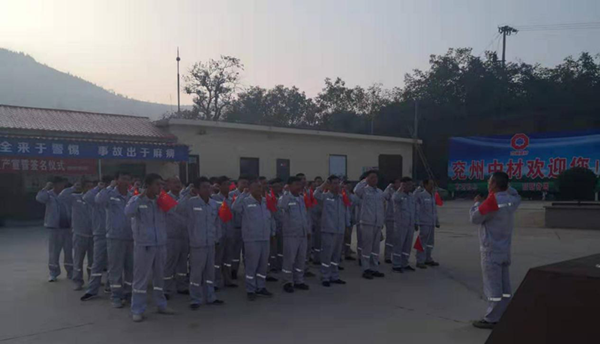 在這個秋高氣爽、瓜果飄香,到處洋溢著一片豐收景象的時節,我們迎來了偉大祖國的70周年華誕。為慶祝祖國的生日,兗州中材蘭陵分公司在辦公生活區,組織開展了以“愛國敬業,安全發展”為主題的升國旗、安全生產宣誓等一系列活動。 “全體肅立,行注目禮,升國旗,奏唱國歌!”伴隨著嘹亮的國歌,五星紅旗冉冉升起,兗州中材蘭陵分公司全體人員,莊嚴肅靜,目光隨著紅旗升高。旗升至頂,全體人員注目禮畢,高呼“我愛你中國,祖國萬歲”。 祖國是大家,家庭是小家。每個員工的安全,決定著一個家庭的幸福團圓,進而牽動著祖國的和諧發展。因此,始終要把安全放在首位。“我宣誓:時刻牢記安全生產方針,遵守安全生產法律法規,服從公司安全管理規定,認真履行安全生產責任,全面提高安全技能,讓家人放心,讓企業放心,做一名合格的員工!”錚錚誓言,從每名員工口中朗朗而出,飄蕩在礦山,回蕩在心田。