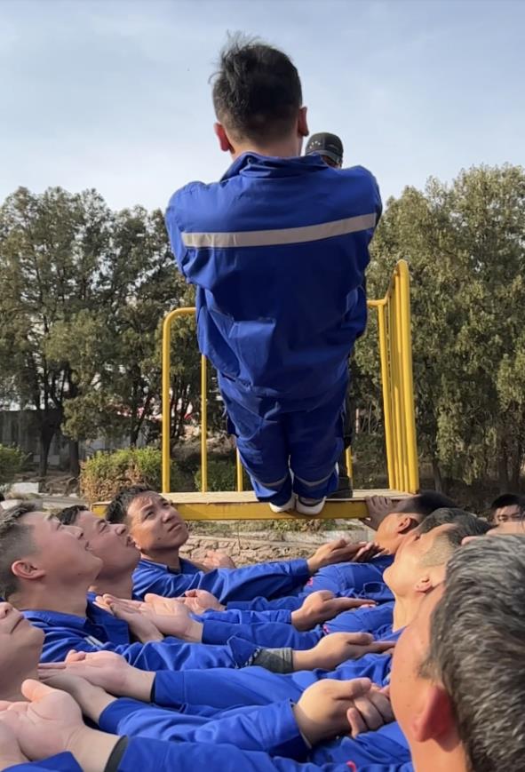 最后一個拓展項目“畢業墻”,墻高4.2米,要求在沒有任何工具的情況下翻過這面墻,剛開始每個人心里都微微一驚。最后,在教官的帶領下,員工們克服恐懼心理,團結協作,眾志成城,全部翻過了畢業墻,他們揮舞著旗幟,高聲吶喊“我們勝利了”!兗州中材公司就是這樣一個充滿激情的團隊,員工們翻過了拓展訓練營的畢業墻,相信在工作中也一定能夠翻過他們心中的“畢業墻”。